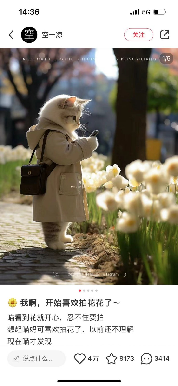 利用AI工具制作猫咪穿着人类的衣服,双脚站立行走,模仿人类行为的图片。能引起观众的好奇心,流量大,制作简单,利用AI工具无脑出图,各大自媒体平台都可以发。